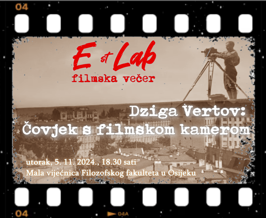 Protagonist je filma filmska kamera. U stalnom pokretu ona bilježi… ŽIVOT. Penje se na tvorničke dimnjake, mostove, dolazi na kupališta, snima iz jurećeg automobila ili s motocikla. Kamerman leži na pruzi u adrenalinskom iščekivanju jurećeg vlaka. Vertov svog protagonista – snimatelja/kameru – šalje u bolnicu, rodilišta… na groblja, sprovode… sportska natjecanja… ulice i trgove. U svemu tome rađa se – filmski jezik. Na rubu figurativnosti i apstrakcije, Čovjek s filmskom kamerom prilog je Benjaminovom optimizmu glede utjecaja kinematografije na razaranje sakralne uloge AURE u doživljaju umjetničkog djela. Ali, ne samo to… Ovaj je film vrhunac sovjetske/ruske AVANGARDE i njezin umjetnički testament. U okviru sekcije »Filmozofija« EstLaba razgovaramo o ovom, nijemom (ali »mnogogovorećem«/!/) kino-klasiku. Pogledajmo film skupa i razgovarajmo o tomu što nam znači DANAS. mk?